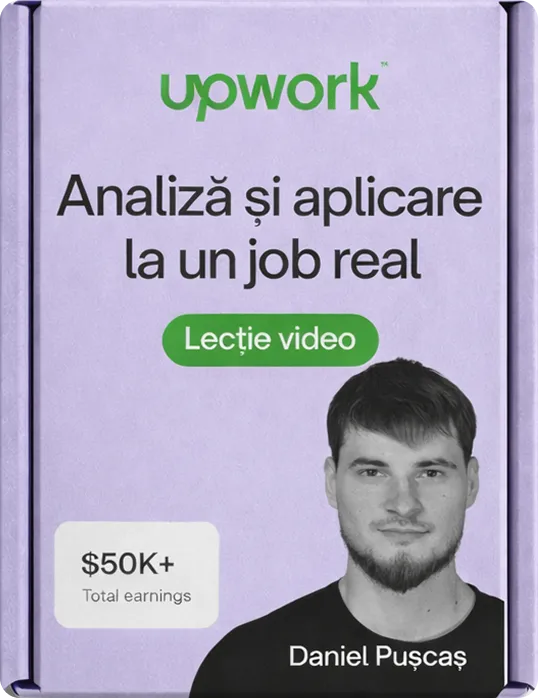 Doar la webinar primești acces la această lecție bonus, în care este analizat un job real și este demonstrat procesul complet de aplicare, exact așa cum se cere pe Upwork.